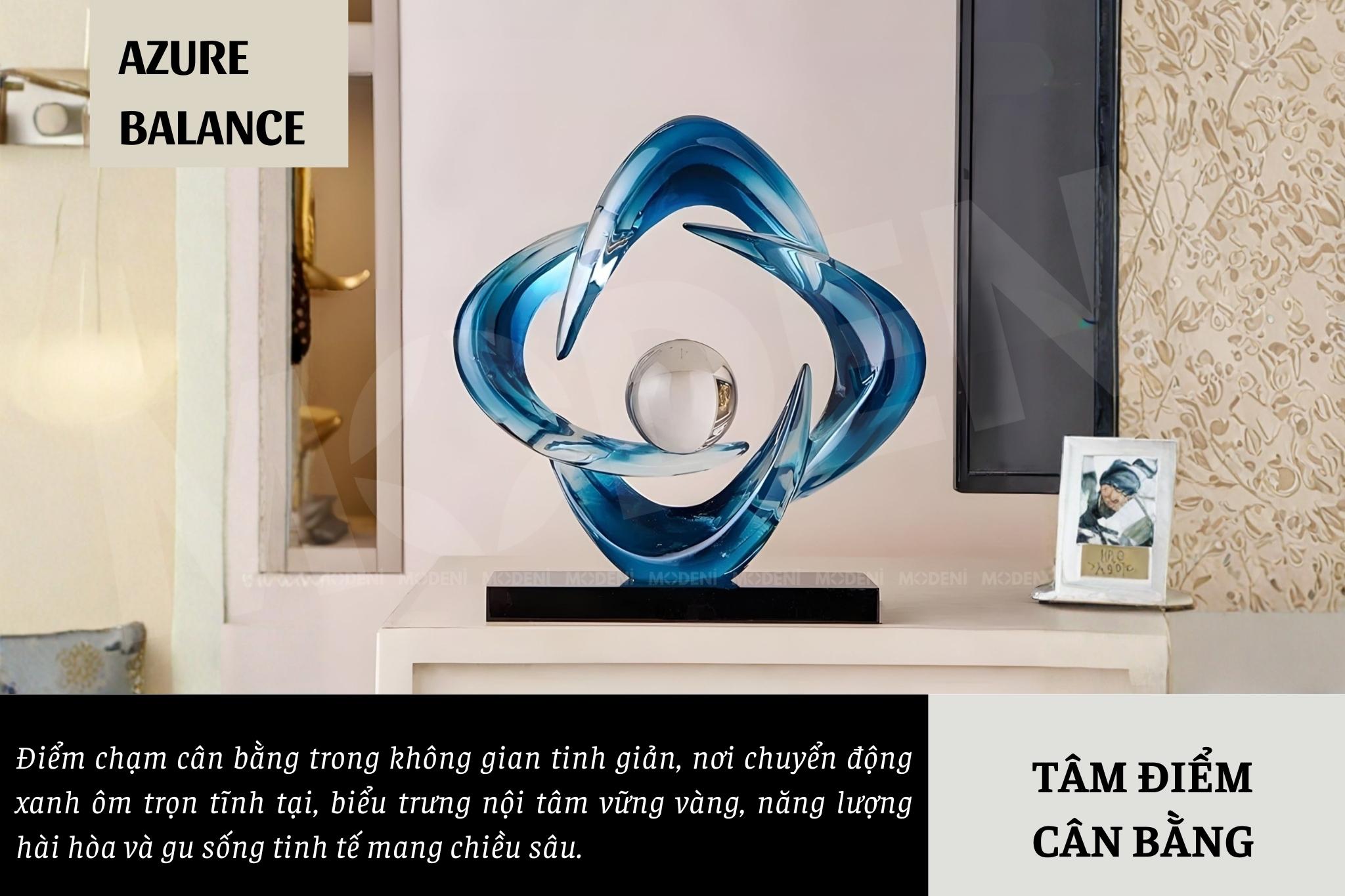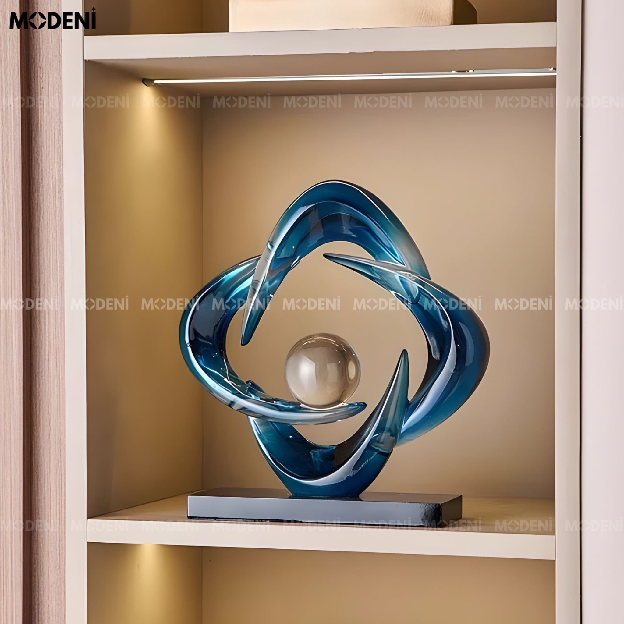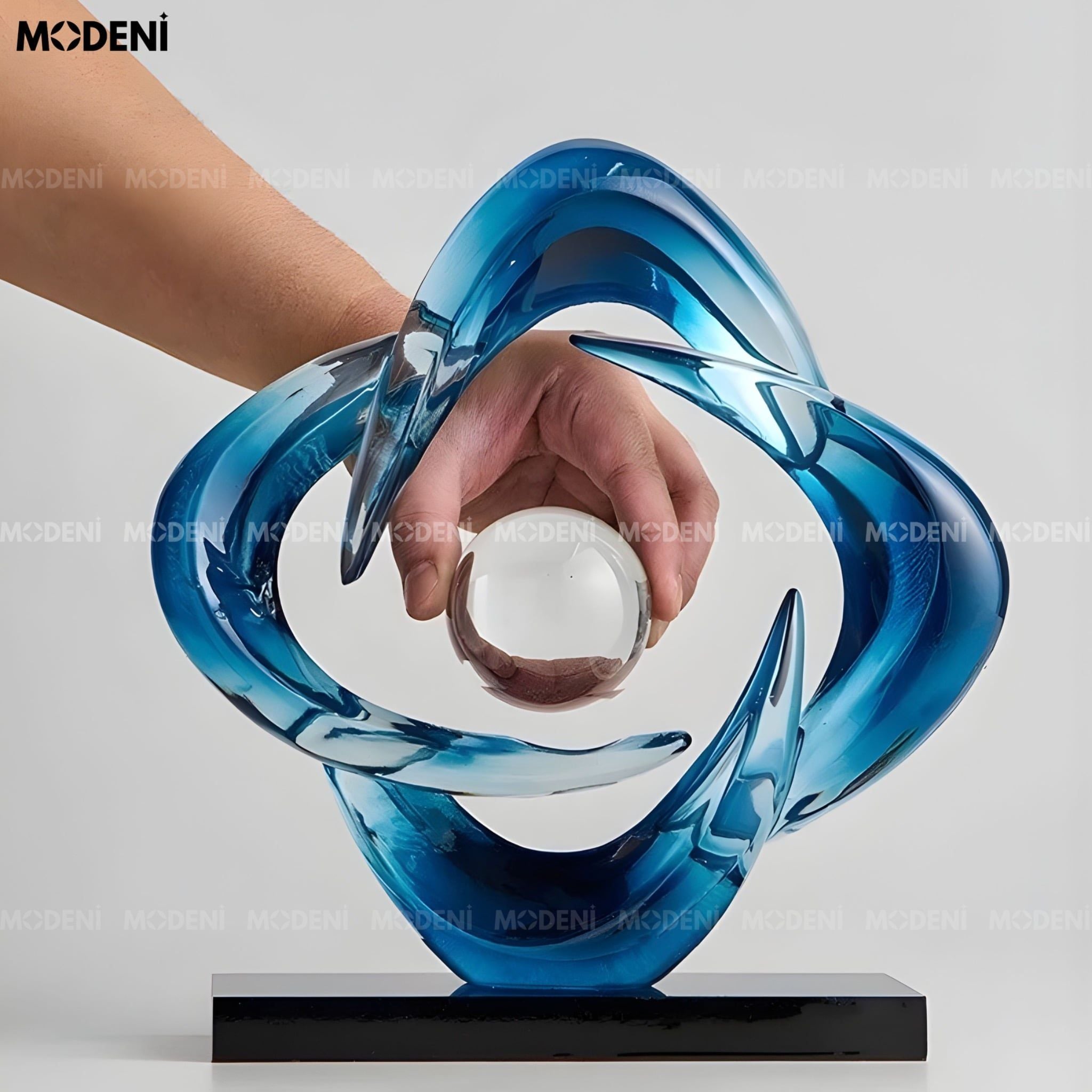 Tượng decor Cosmic Blue – Resin nghệ thuật phối cầu thủy tinh, điểm nhấn sang trọng cho mọi không gian