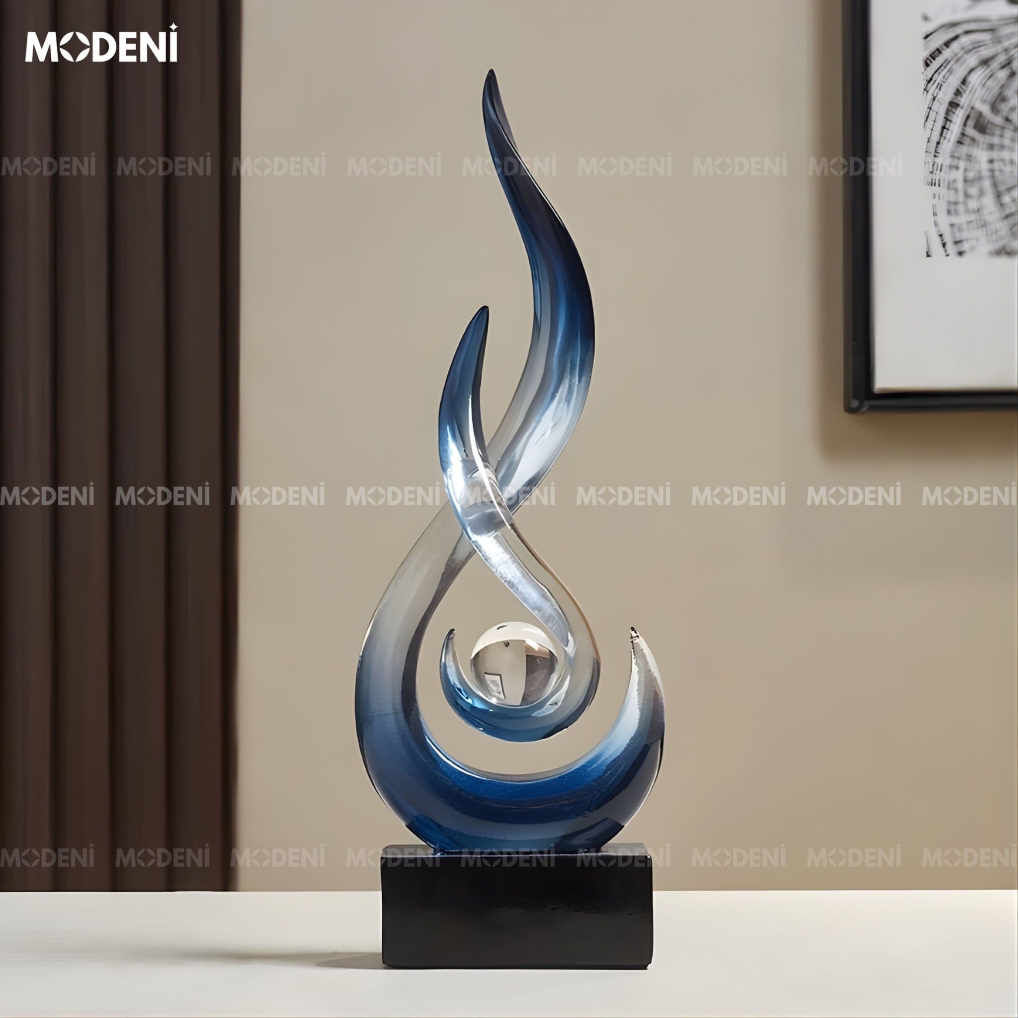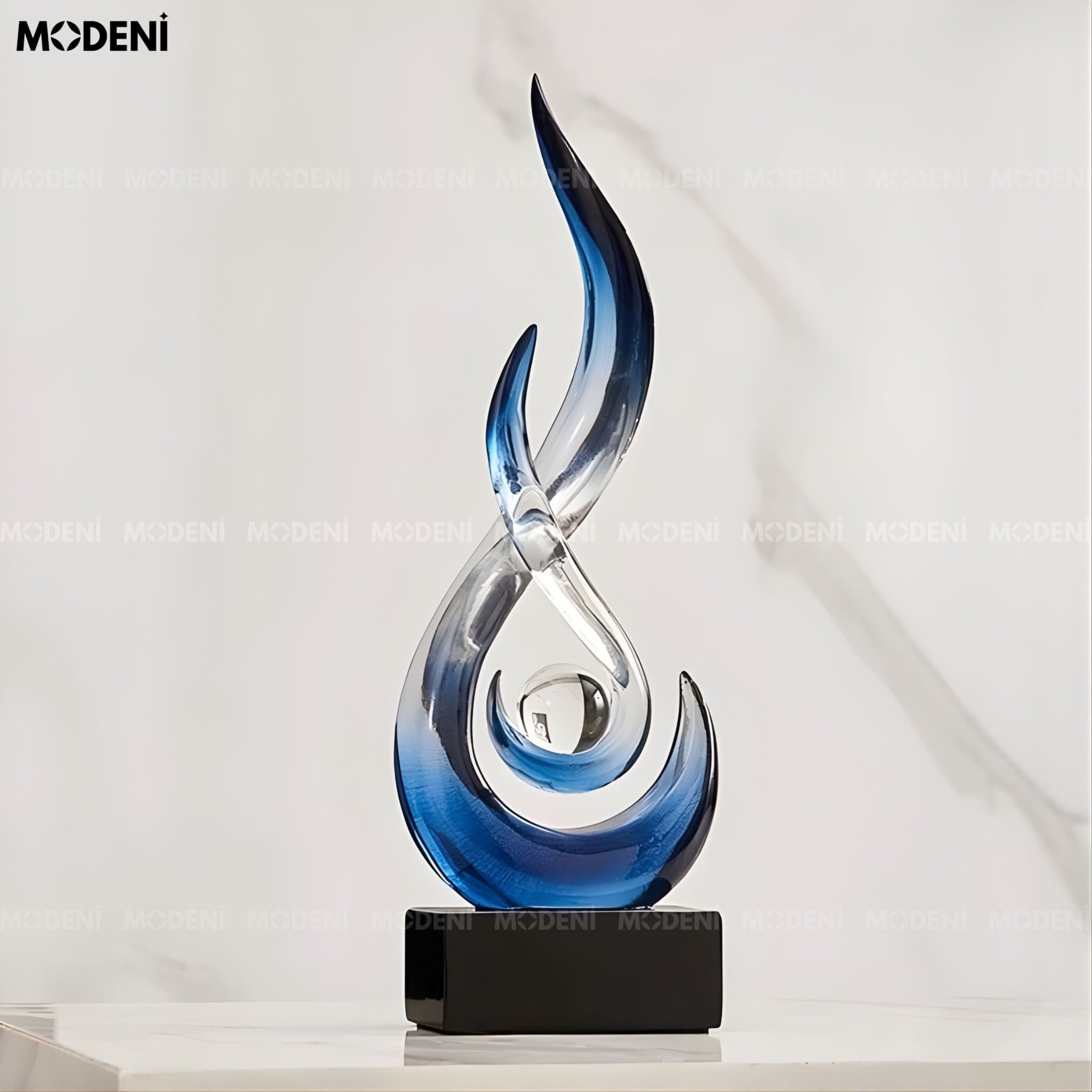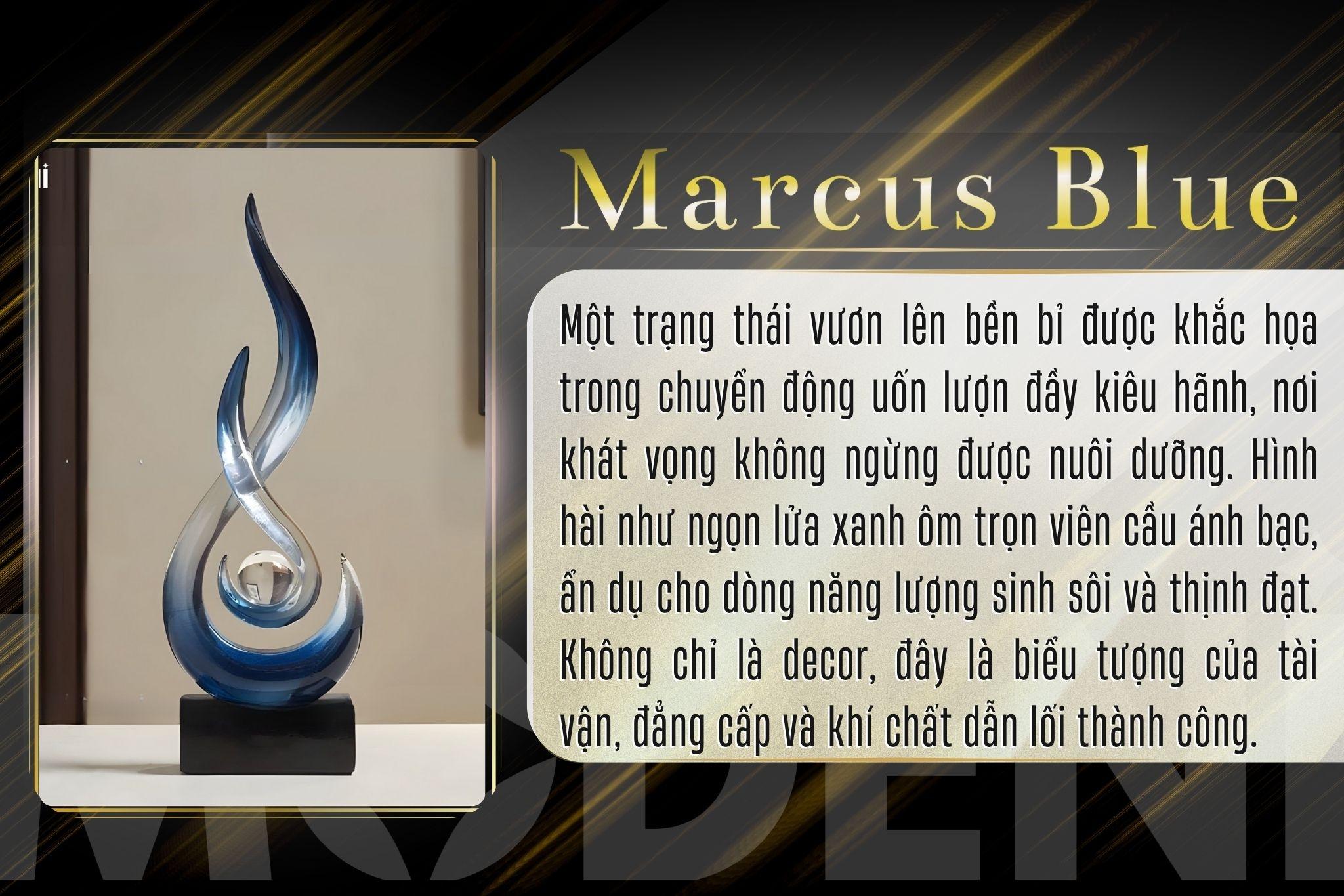 Tượng decor Marcus Blue – Nhựa resin phối cầu thủy tinh, thiết kế xoáy lửa nghệ thuật sang trọng