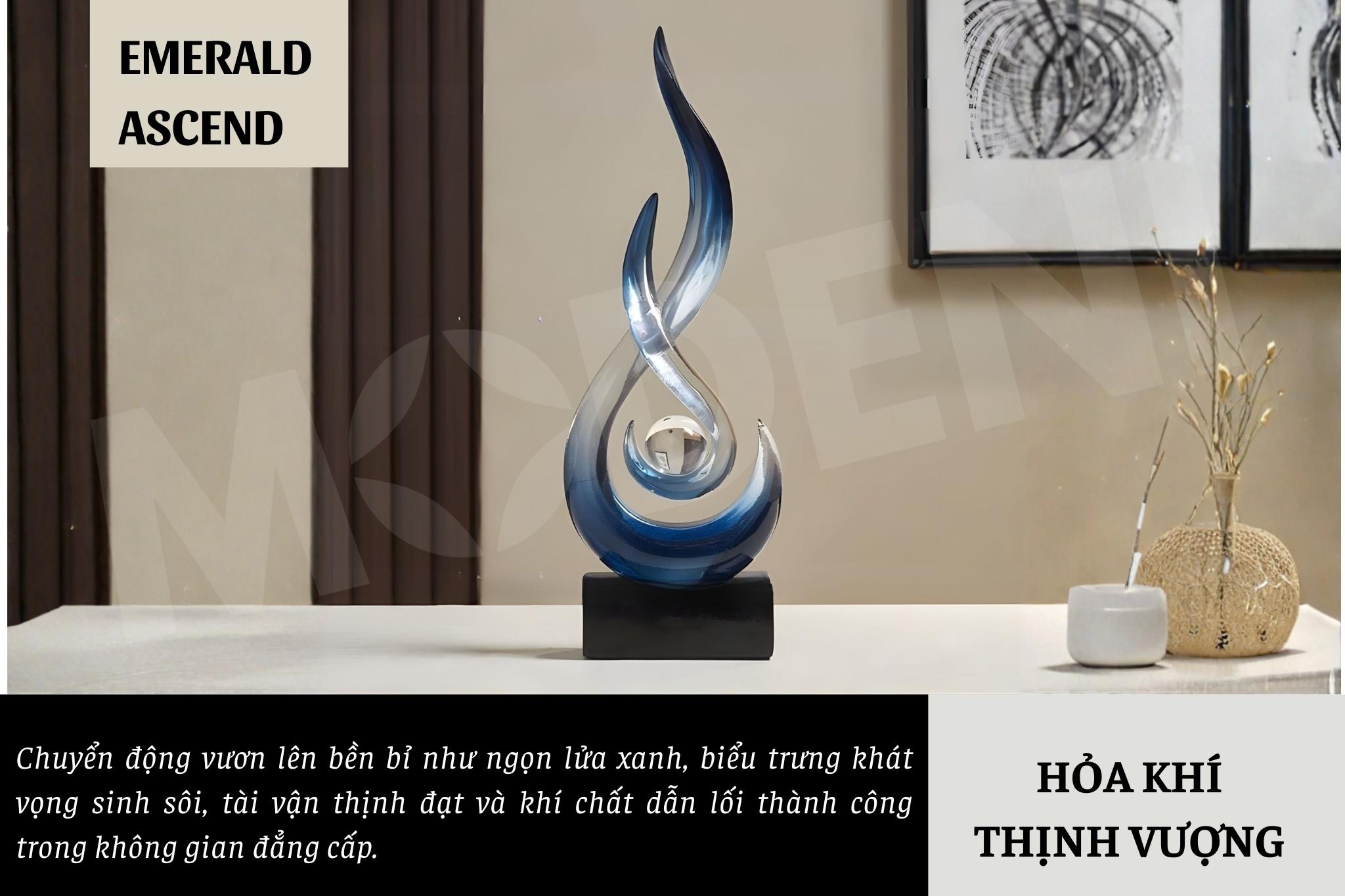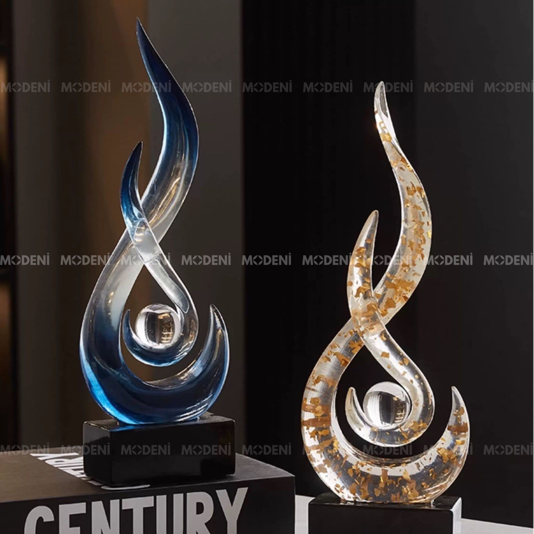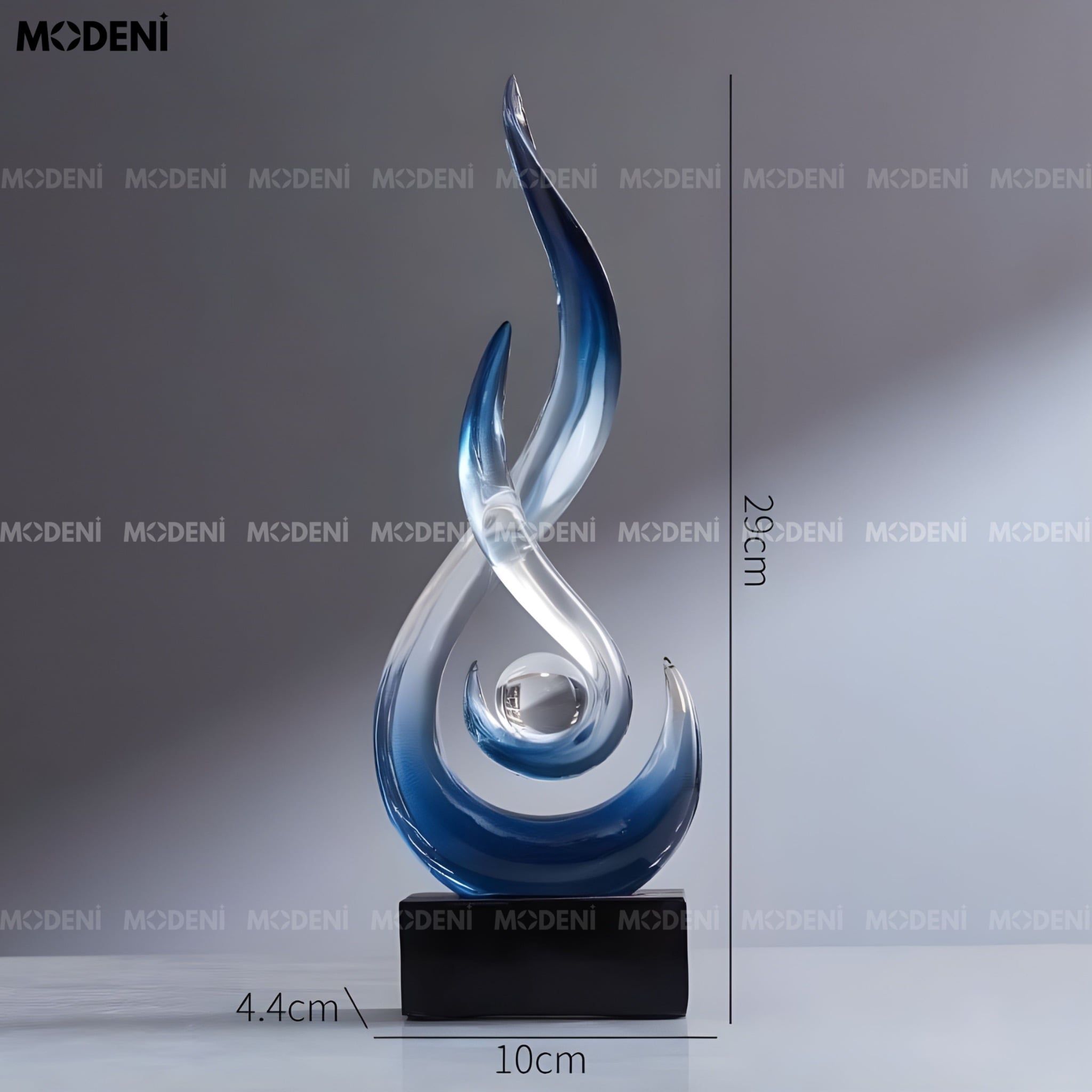 Tượng decor Marcus Blue – Nhựa resin phối cầu thủy tinh, thiết kế xoáy lửa nghệ thuật sang trọng
