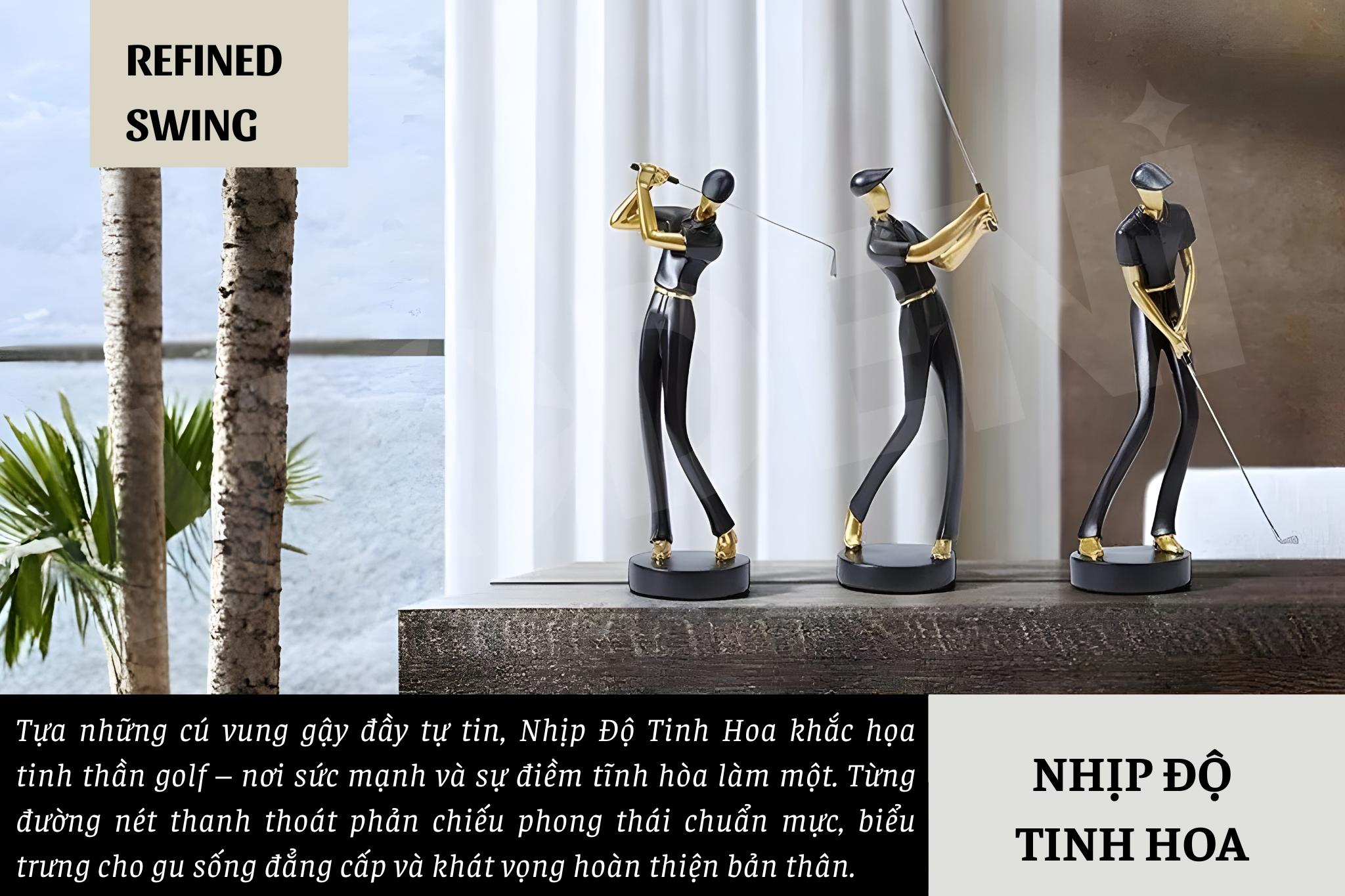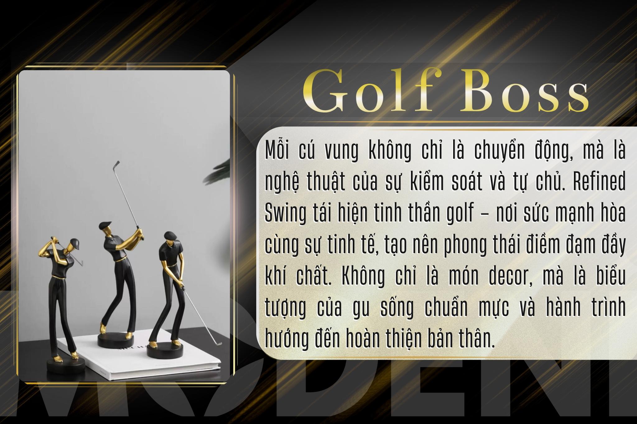 Tượng Golf Boss Đen Nghệ Thuật Hiện Đại – Cú Vung Lịch Lãm Phối Pha Lê – Decor Bàn Làm Việc, Kệ Sách, Văn Phòng Thiết Kế