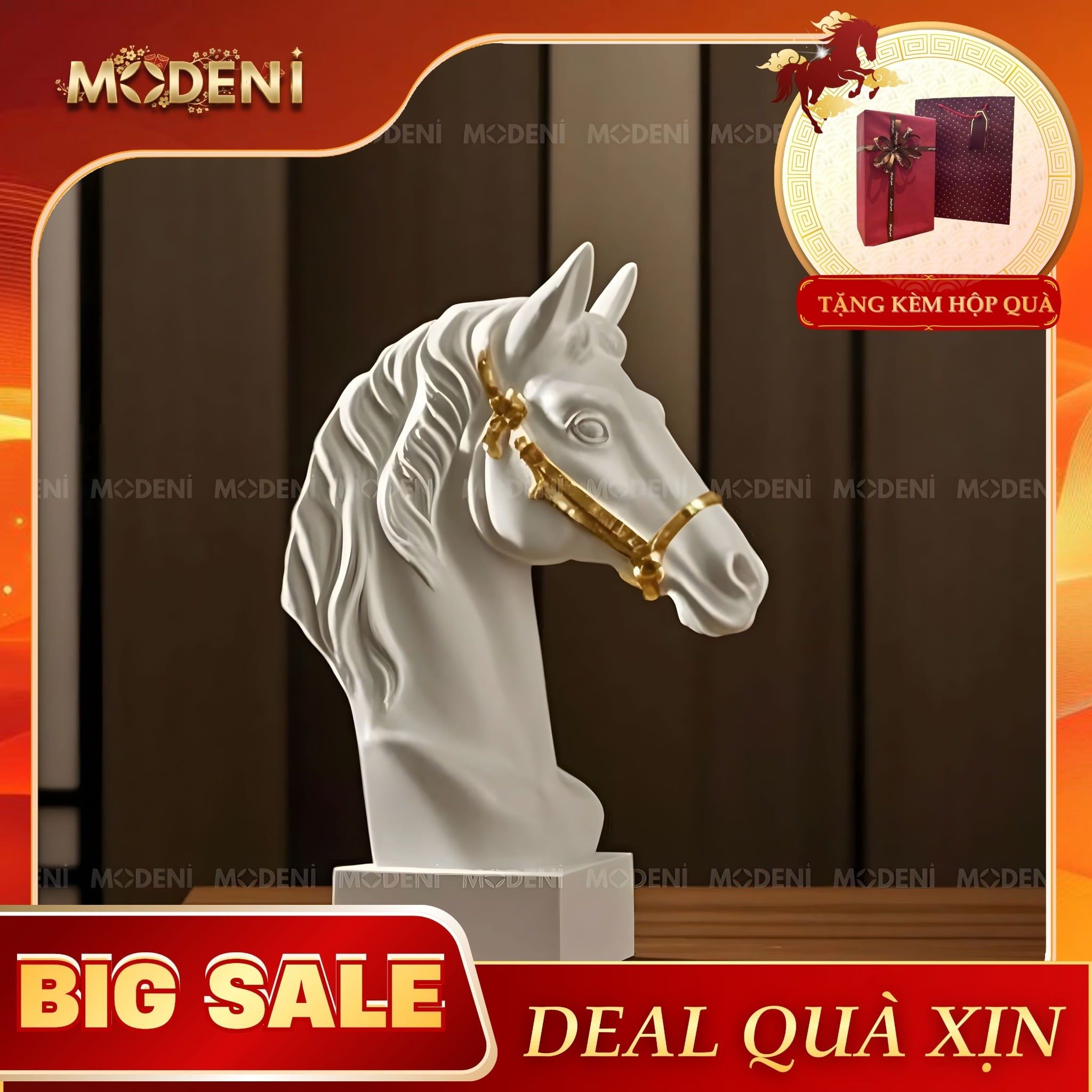 Tượng Trang Trí Arven Ngựa Trắng Hoàng Gia – Thiết Kế Đầu Ngựa Tinh Xảo – Decor Sang Trọng Cho Kệ, Bàn Console, Phòng Khách Hiện Đại