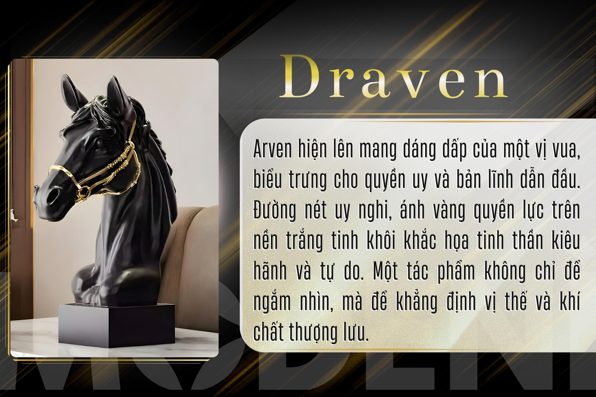 Tượng Trang Trí Draven Ngựa Đen Hoàng Gia – Thiết Kế Đầu Ngựa Sắc Sảo – Dây Cương Vàng Kim Sang Trọng – Decor Bàn Console, Kệ Sách hoặc Văn Phòng Hiện Đại