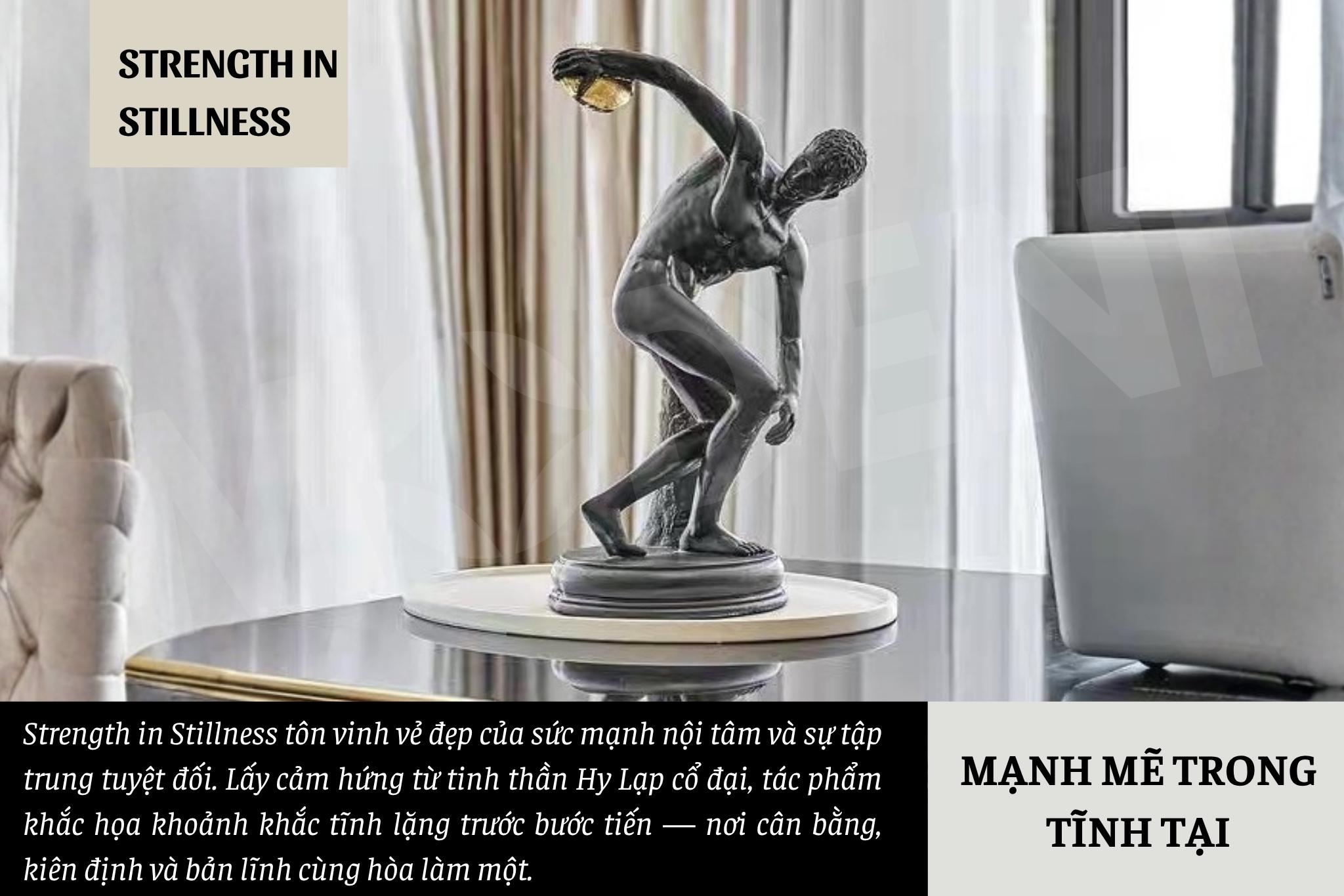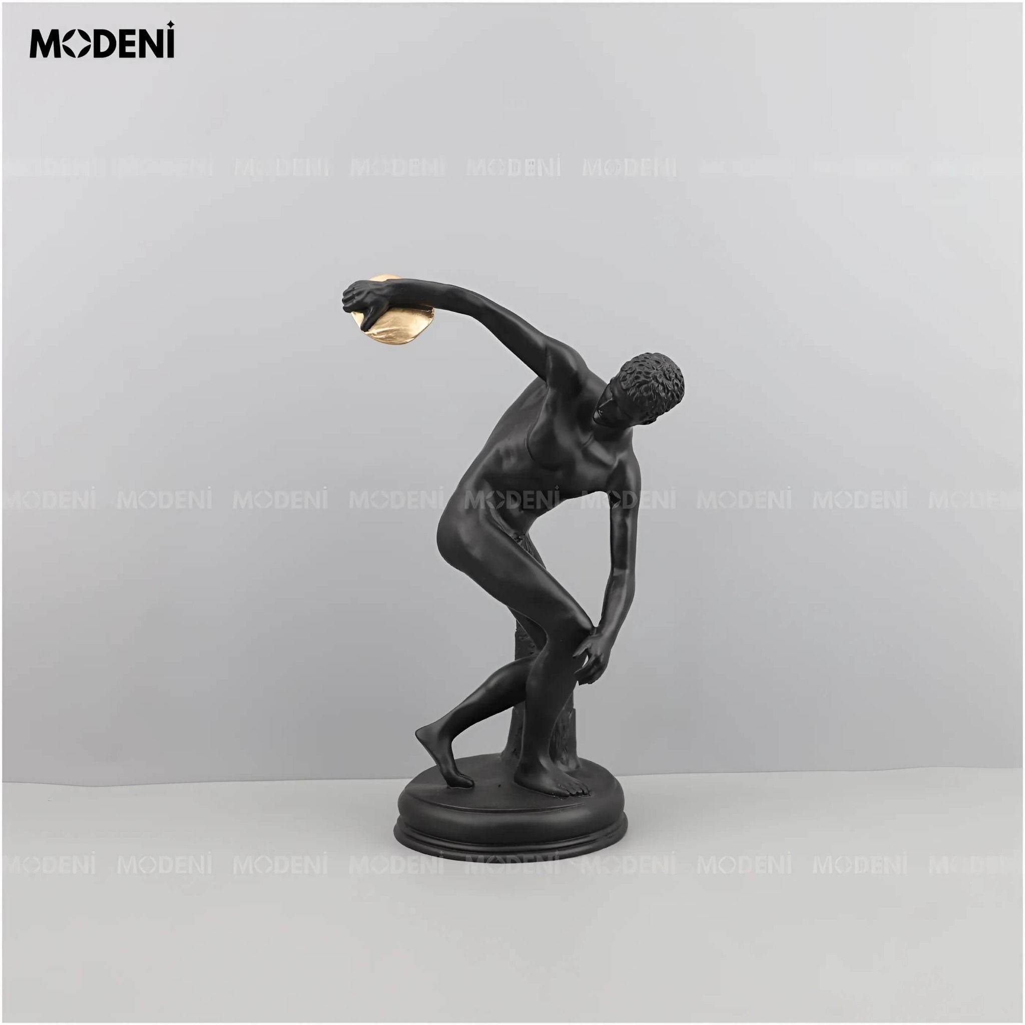 Tượng Trang Trí Aureus Black Nam Thần Hy Lạp – Dáng Ném Đĩa Truyền Thống – Decor Kệ Tủ, Bàn Phòng Khách
