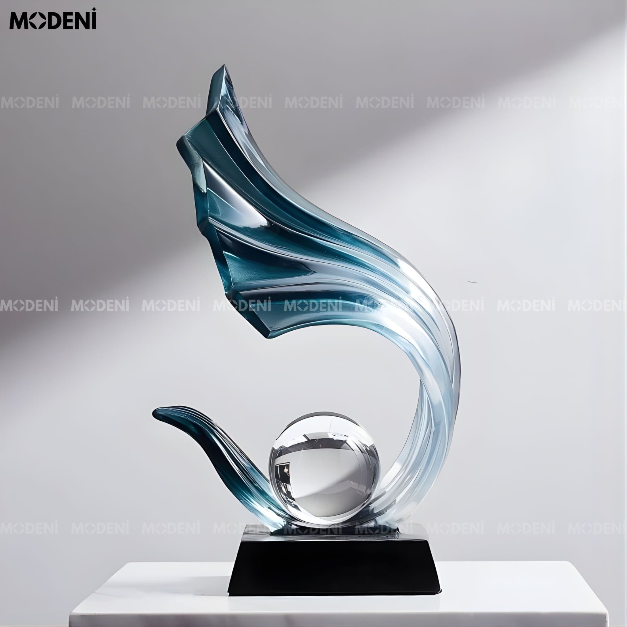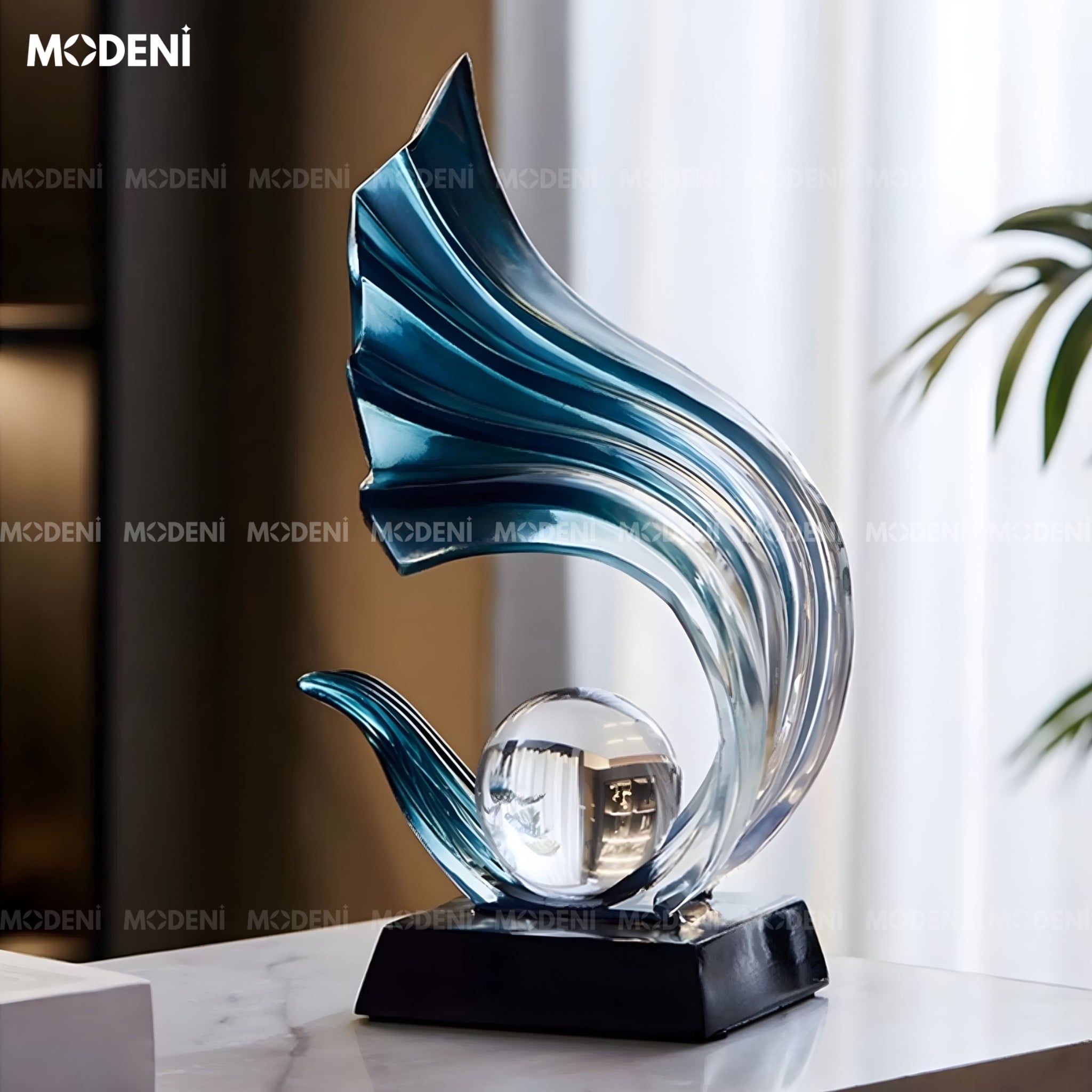 Tượng Trang Trí Celestial Tròn Blue – Polyester Resin cao cấp, điểm nhấn nghệ thuật cho bàn làm việc/kệ tủ hiện đại
