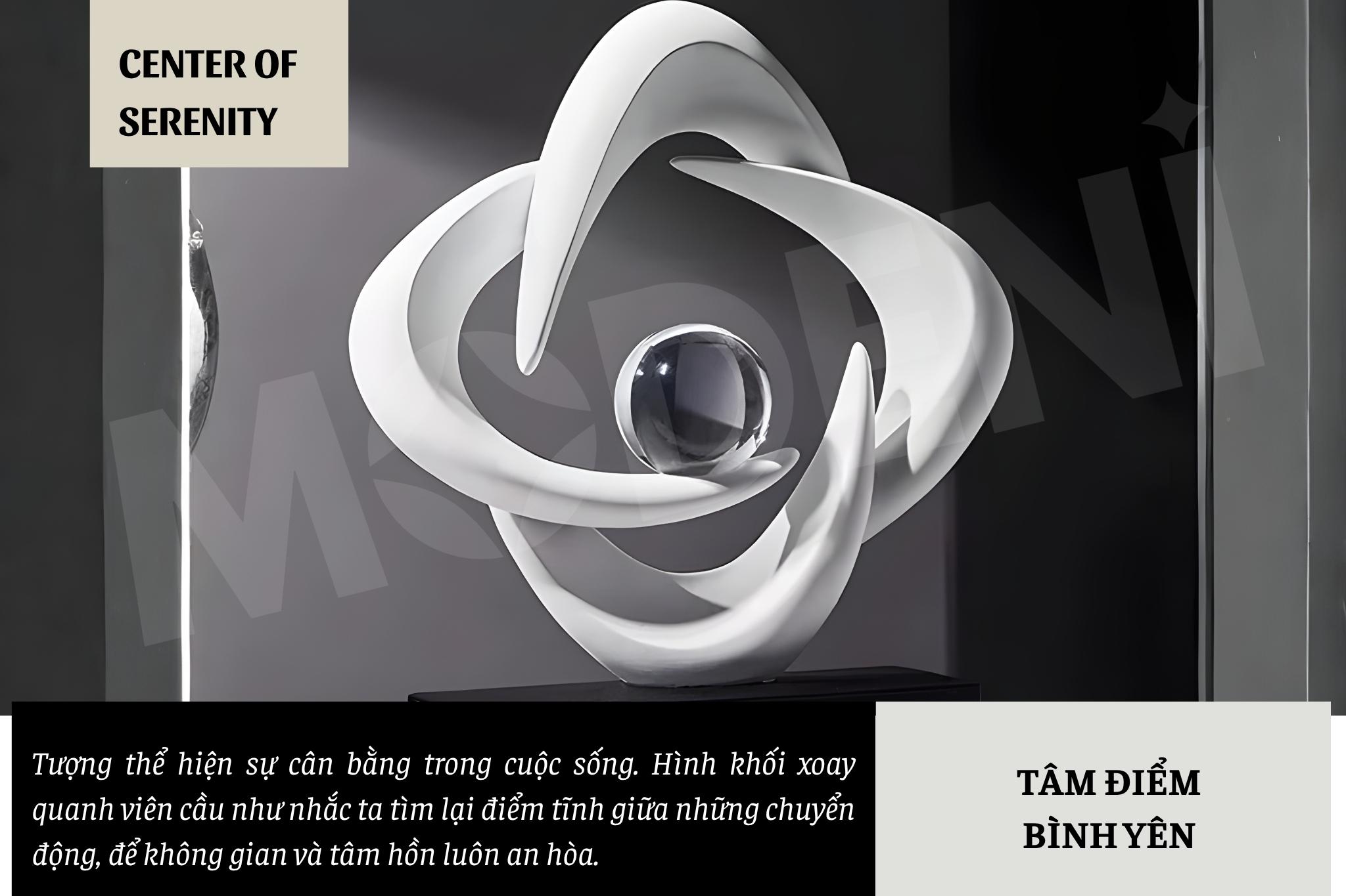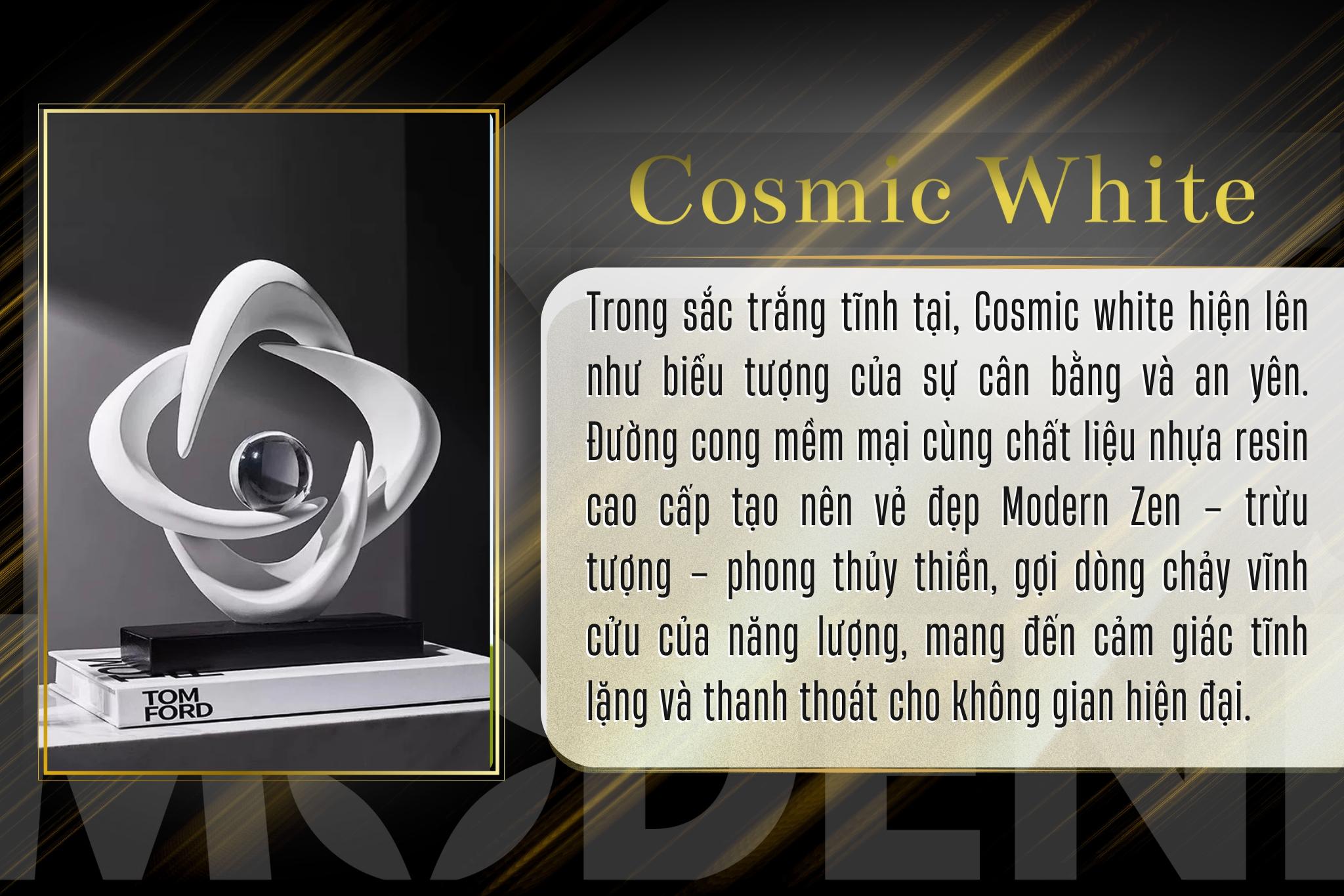 Tượng Trang Trí Cosmic White – Tượng Nghệ Thuật Resin Màu Trắng Đế Đen – Biểu Tượng Cân Bằng Vũ Trụ – Decor Phòng Khách, Văn Phòng, Kệ Sách Sang Trọng