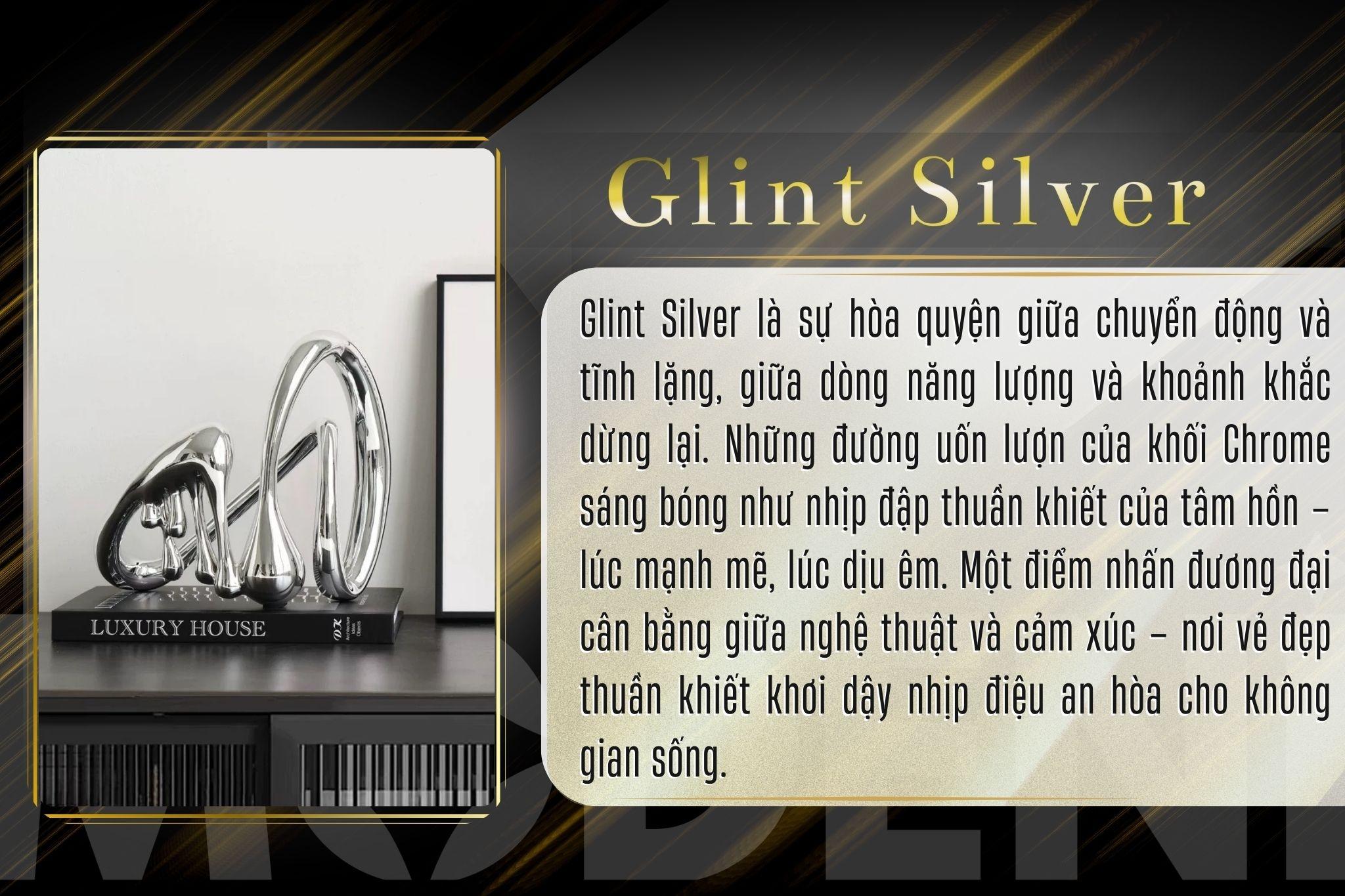 Tượng Trang Trí Glint Silver – Tác Phẩm Nghệ Thuật Ánh Bạc Độc Bản – Thiết Kế Uốn Lượn & Giọt Chảy – Phù Hợp Decor Kệ Tủ, Bàn Sofa Hiện Đại
