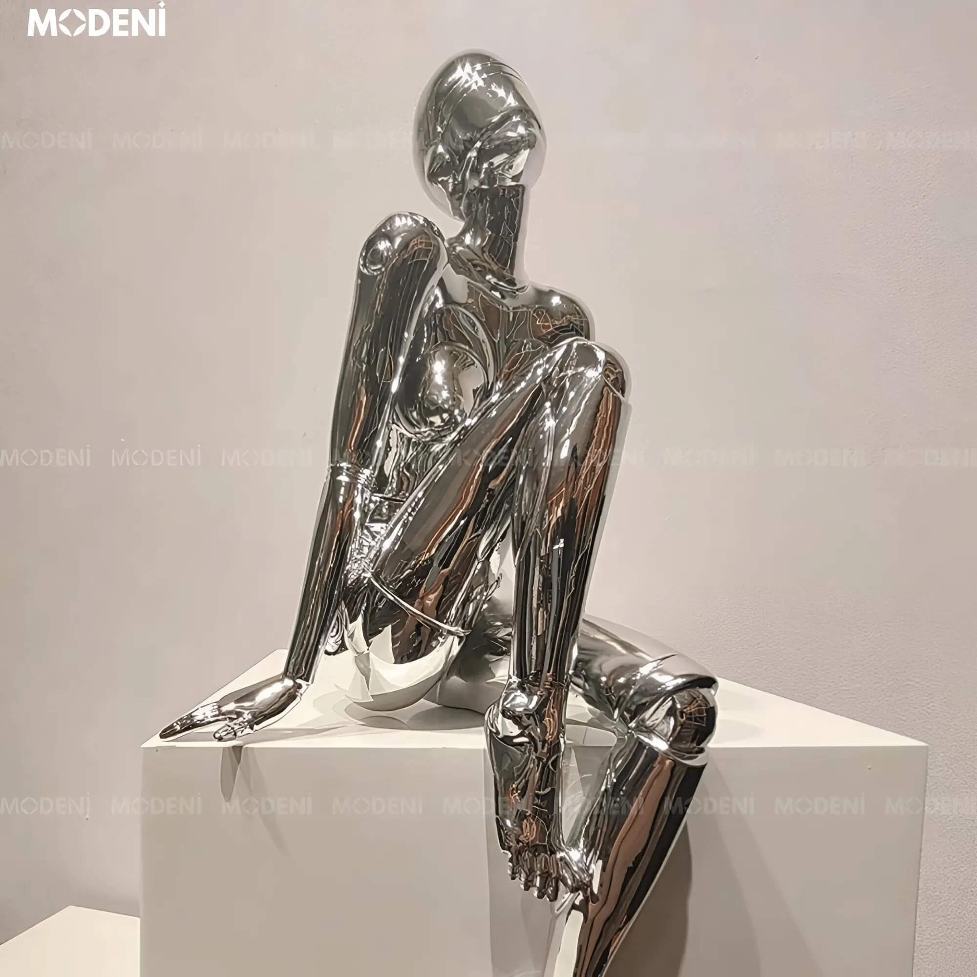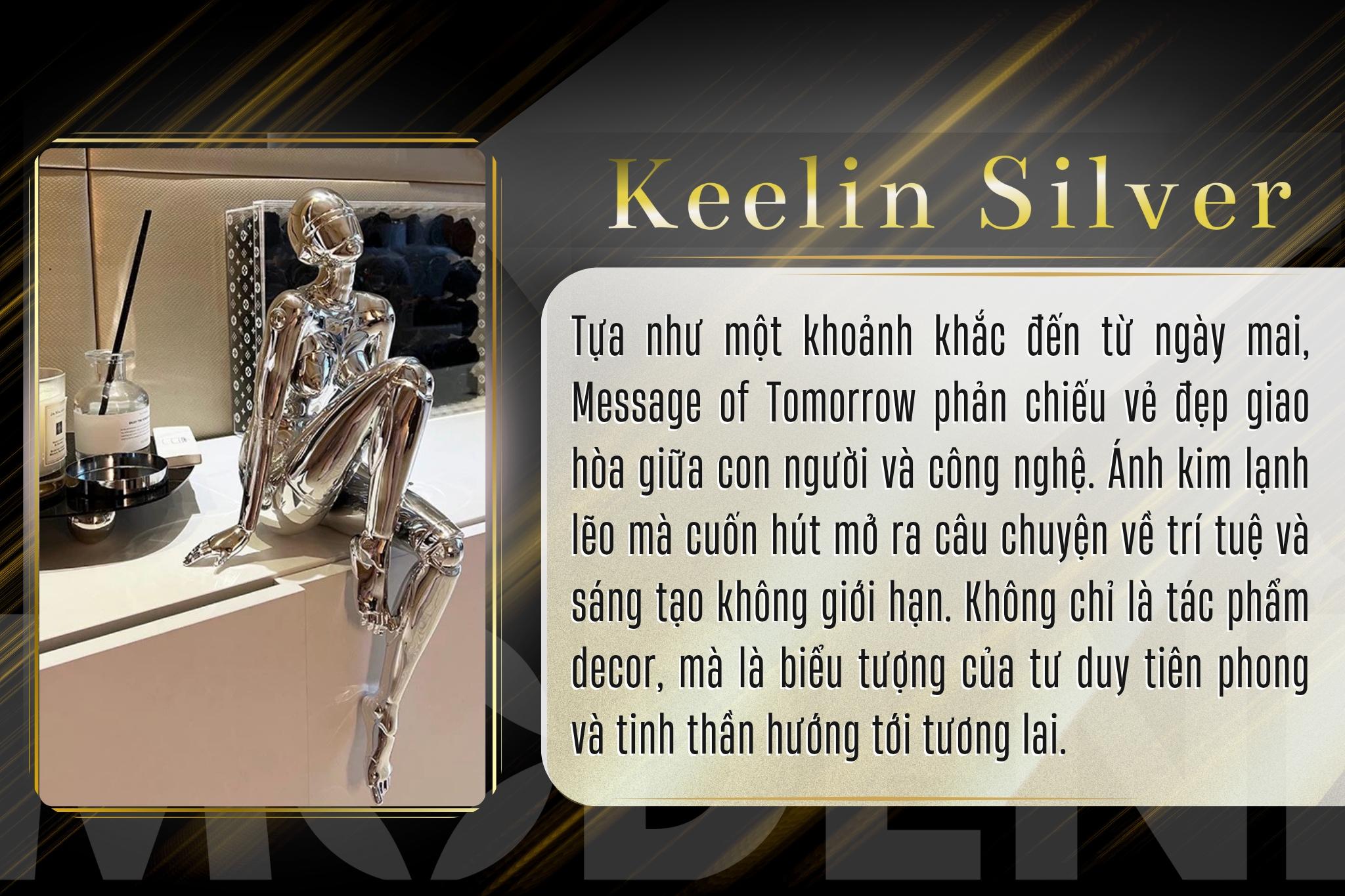 Tượng Keelin Silver Nghệ Thuật Hiện Đại – Mạ Chrome Bạc Bóng Tối Giản – Decor Bàn Làm Việc & Không Gian Thiết Kế