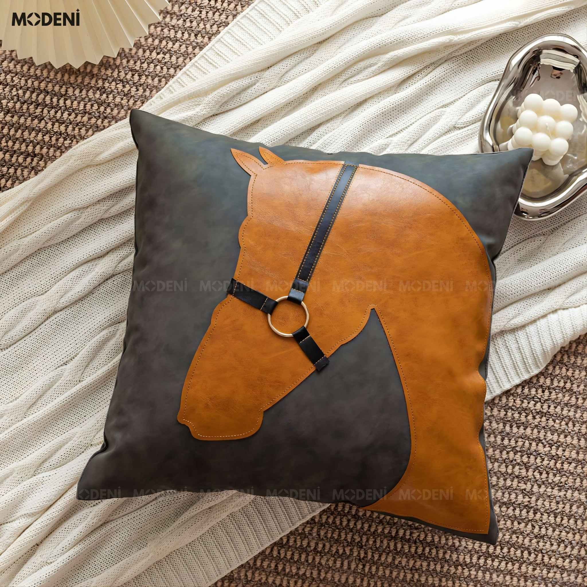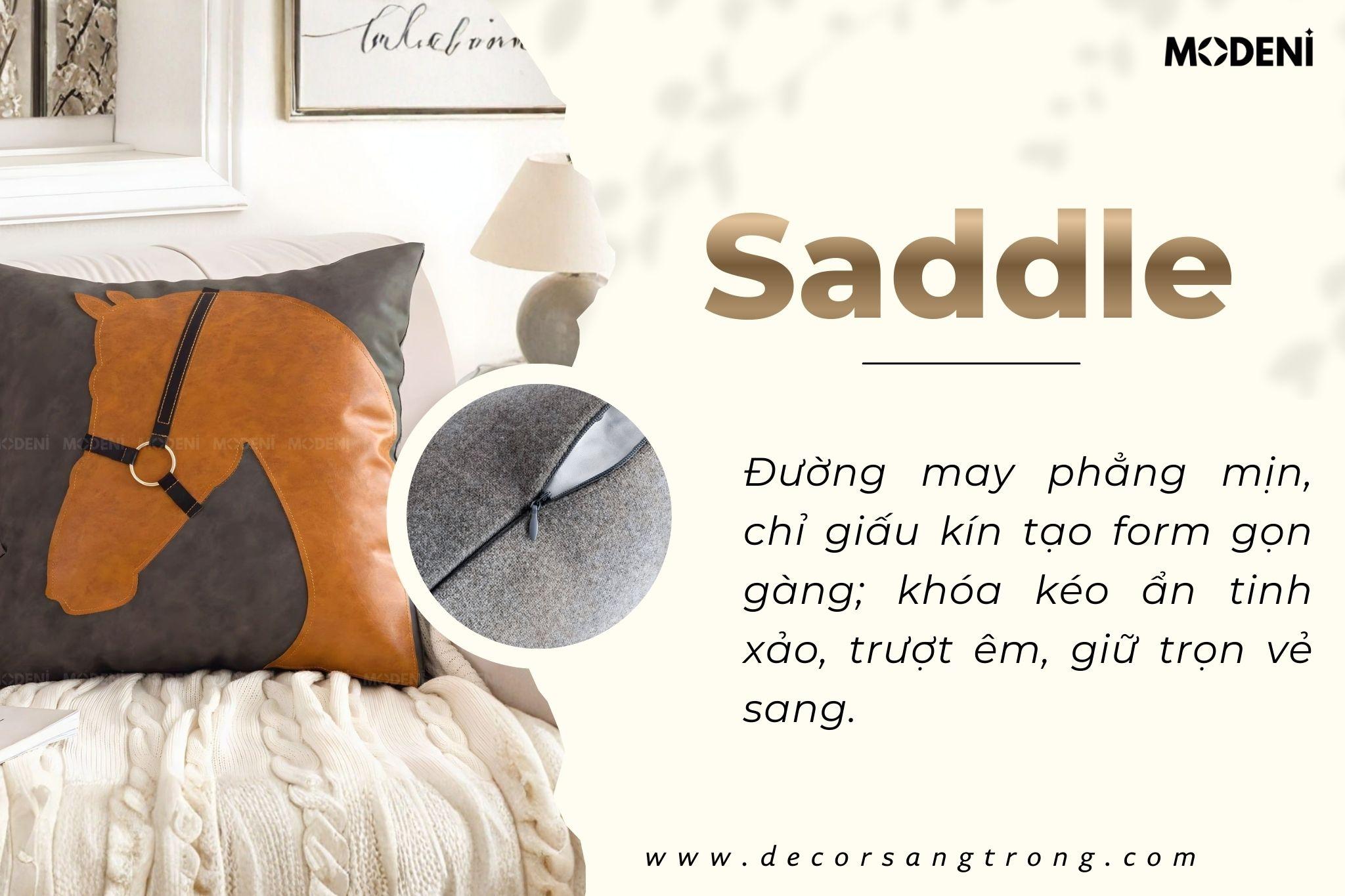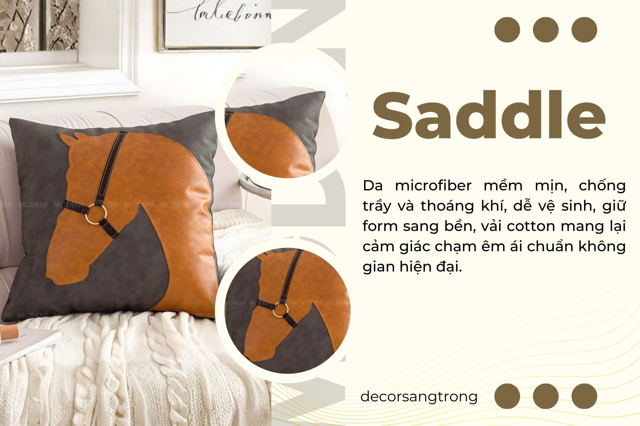 Vỏ Gối Sofa Cao Cấp Luxury Saddle - Vải Cotton Phối Da Họa Tiết Đầu Ngựa Nổi Cổ Điển