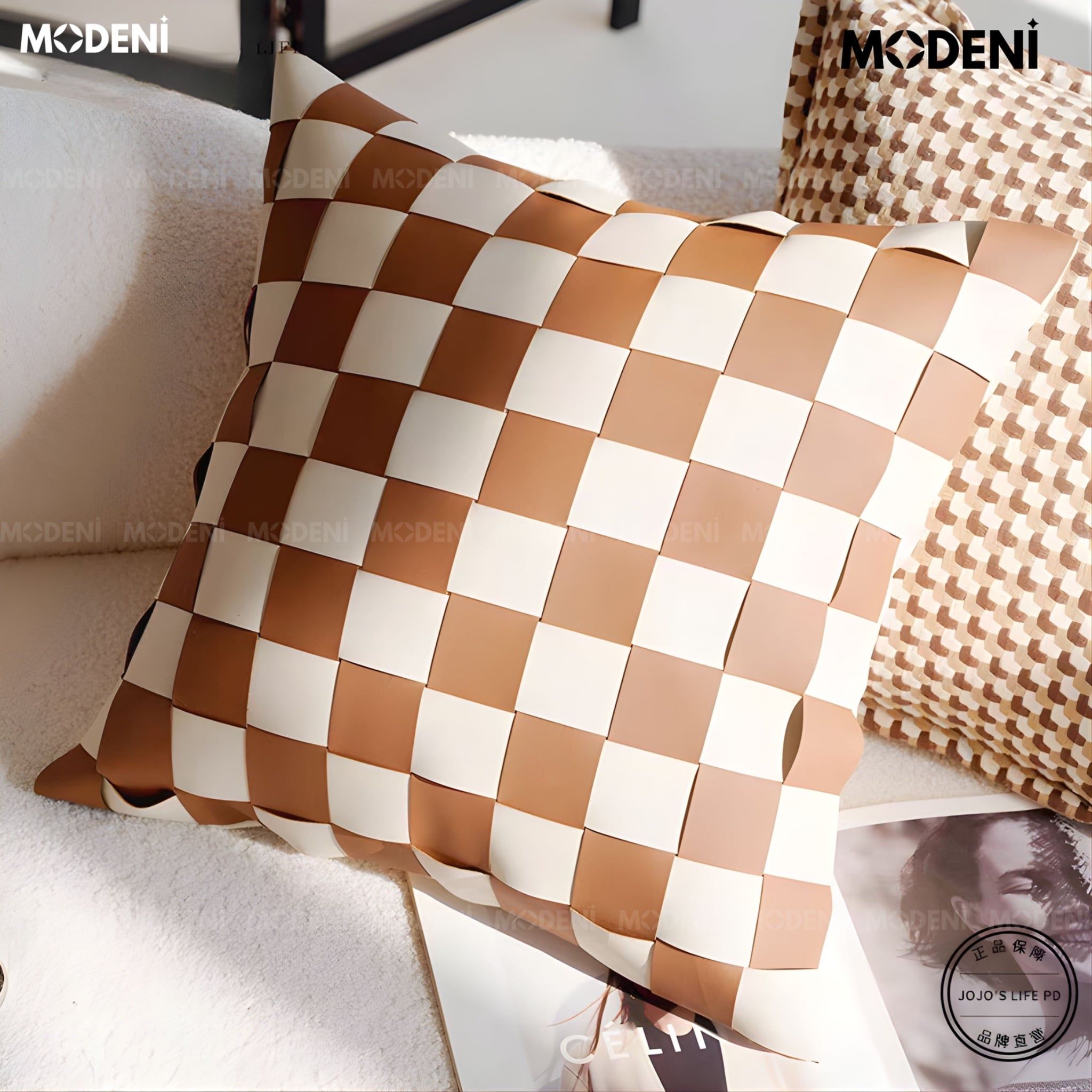 | Họa tiết | Ô vuông đan nâu kem |