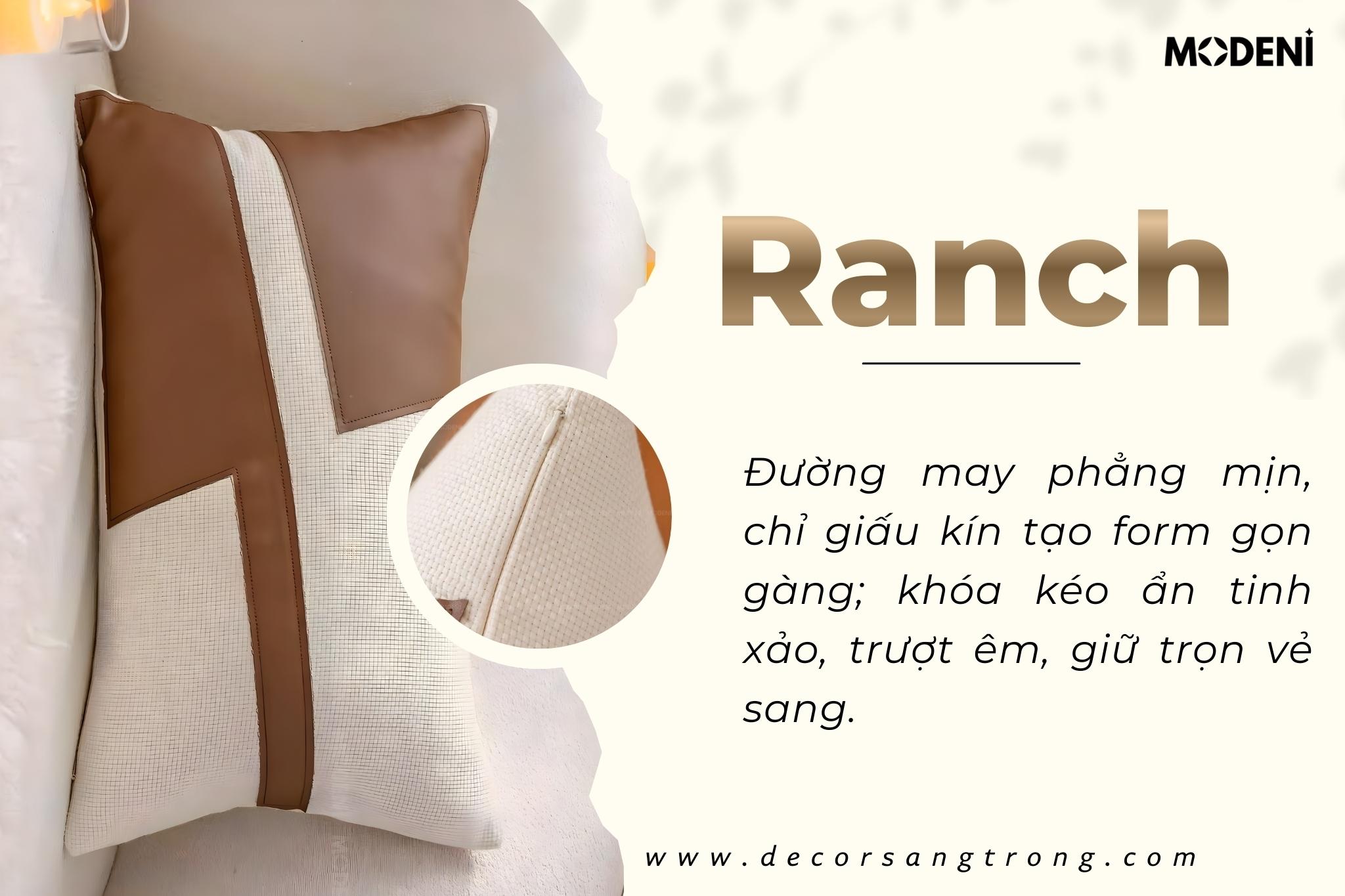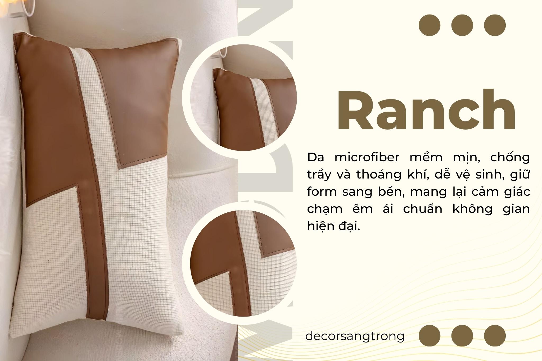 Vỏ Gối Sofa Ranch – Da Microfiber Phối Linen Họa Tiết Mảng Phối Nâu – Kem Hài Hòa Tối Giản