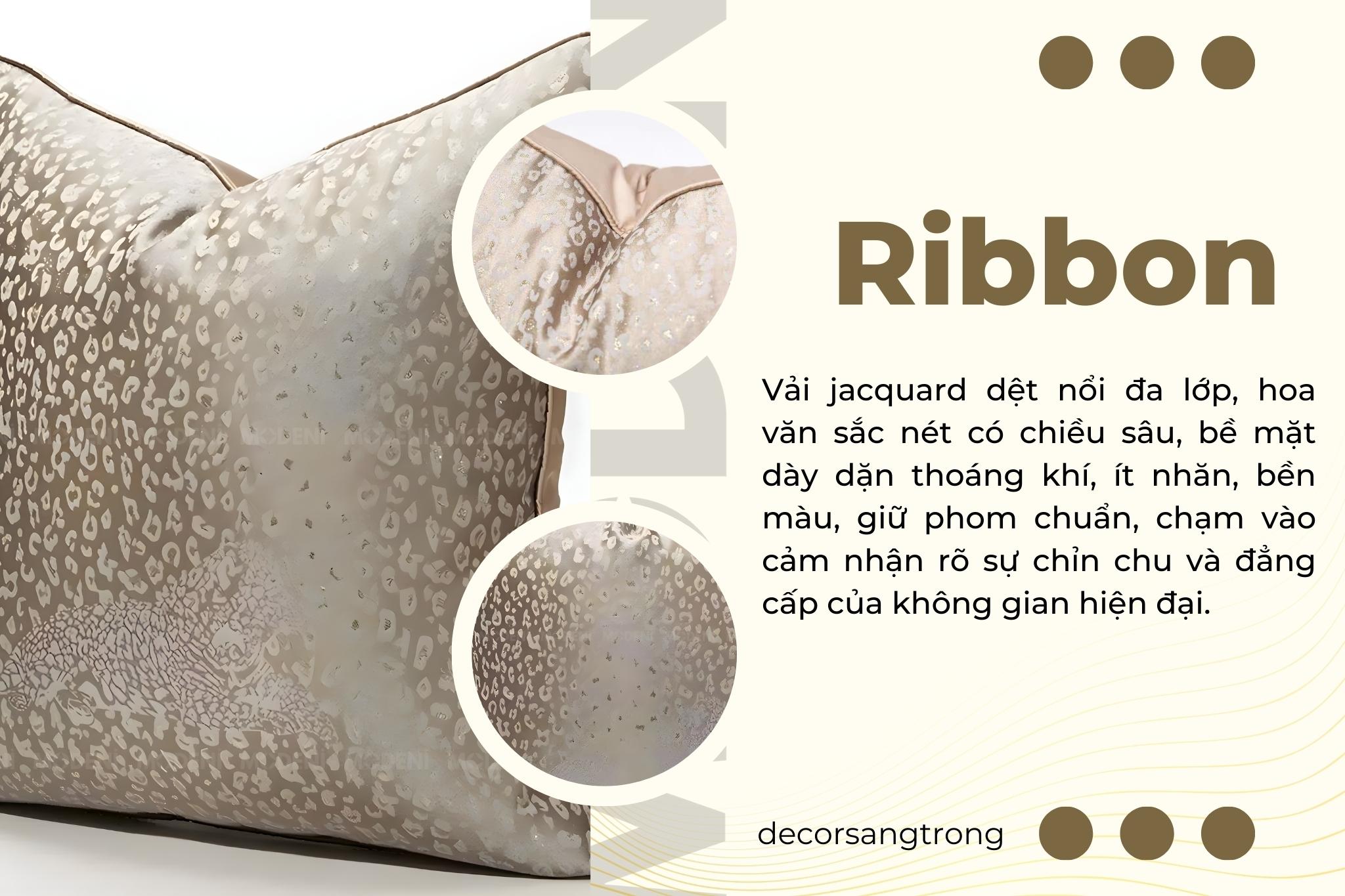 Vỏ Gối Sofa Ribbon – Vải Jackquard Kết Hợp Nhung Họa Tiết Đốm Loang May Khóa Ẩn Phong Cách Hiện Đại