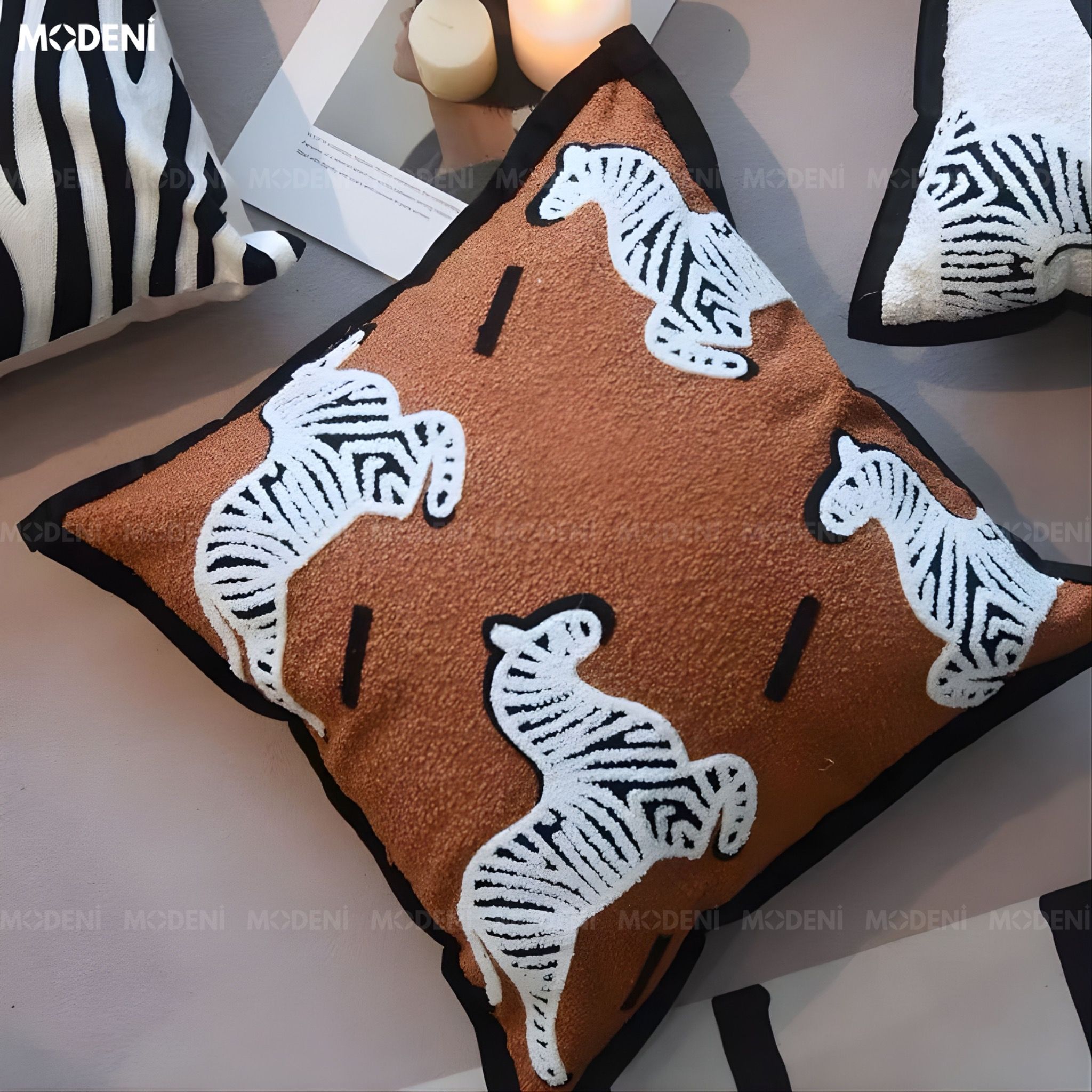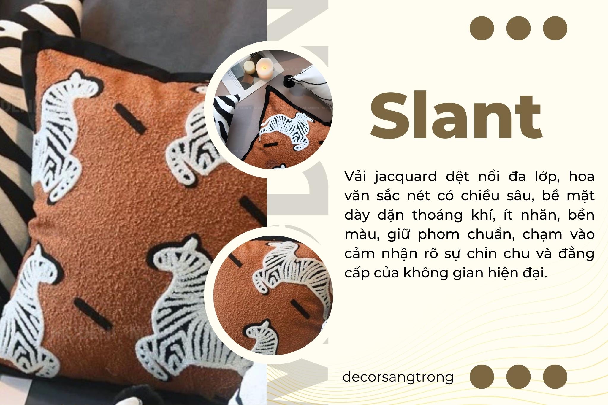 Vỏ Gối Sofa Slant – Vải Jacquard Phối Nhung Họa Tiết Ngựa Vằn Thêu Tân Cổ Điển