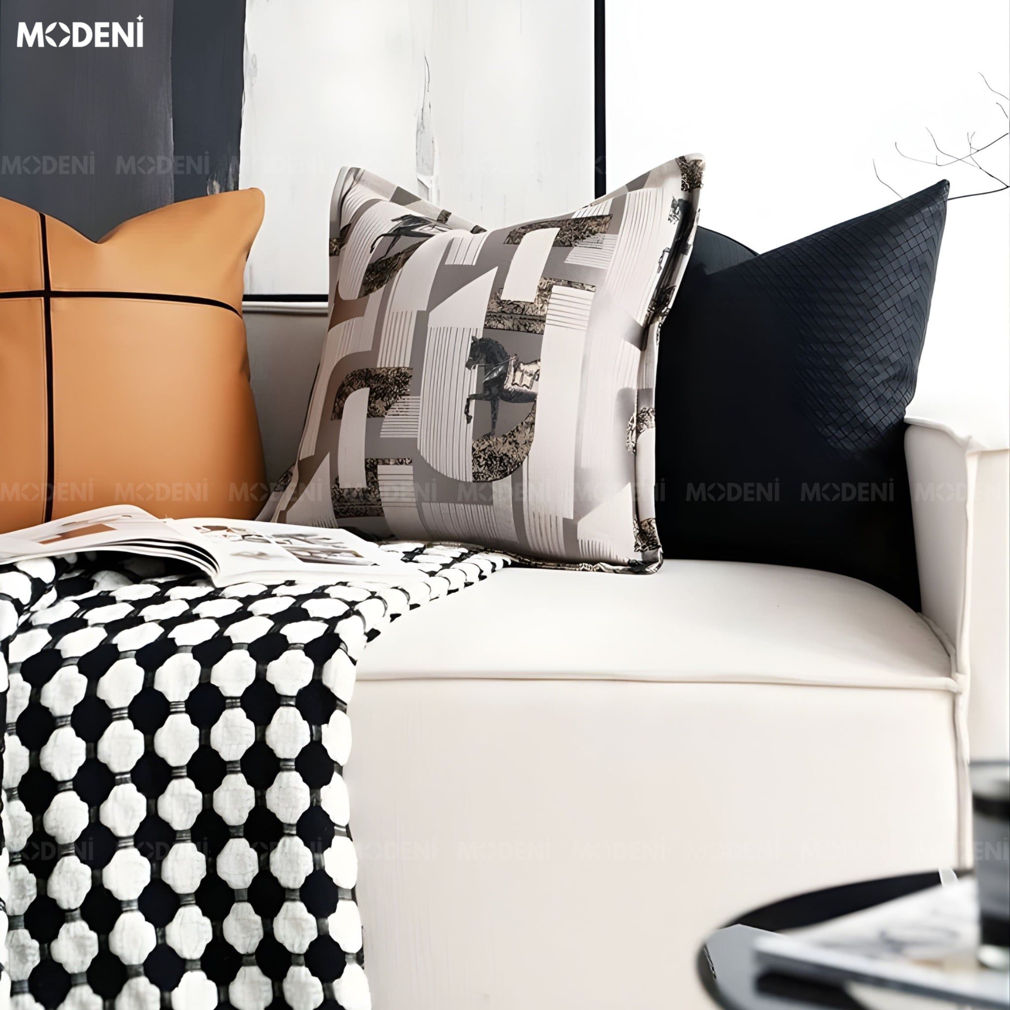 Vỏ Gối Sofa Soflow – Vải Jackquard Họa Tiết Ngựa Vàng May Bo Hiện Đại