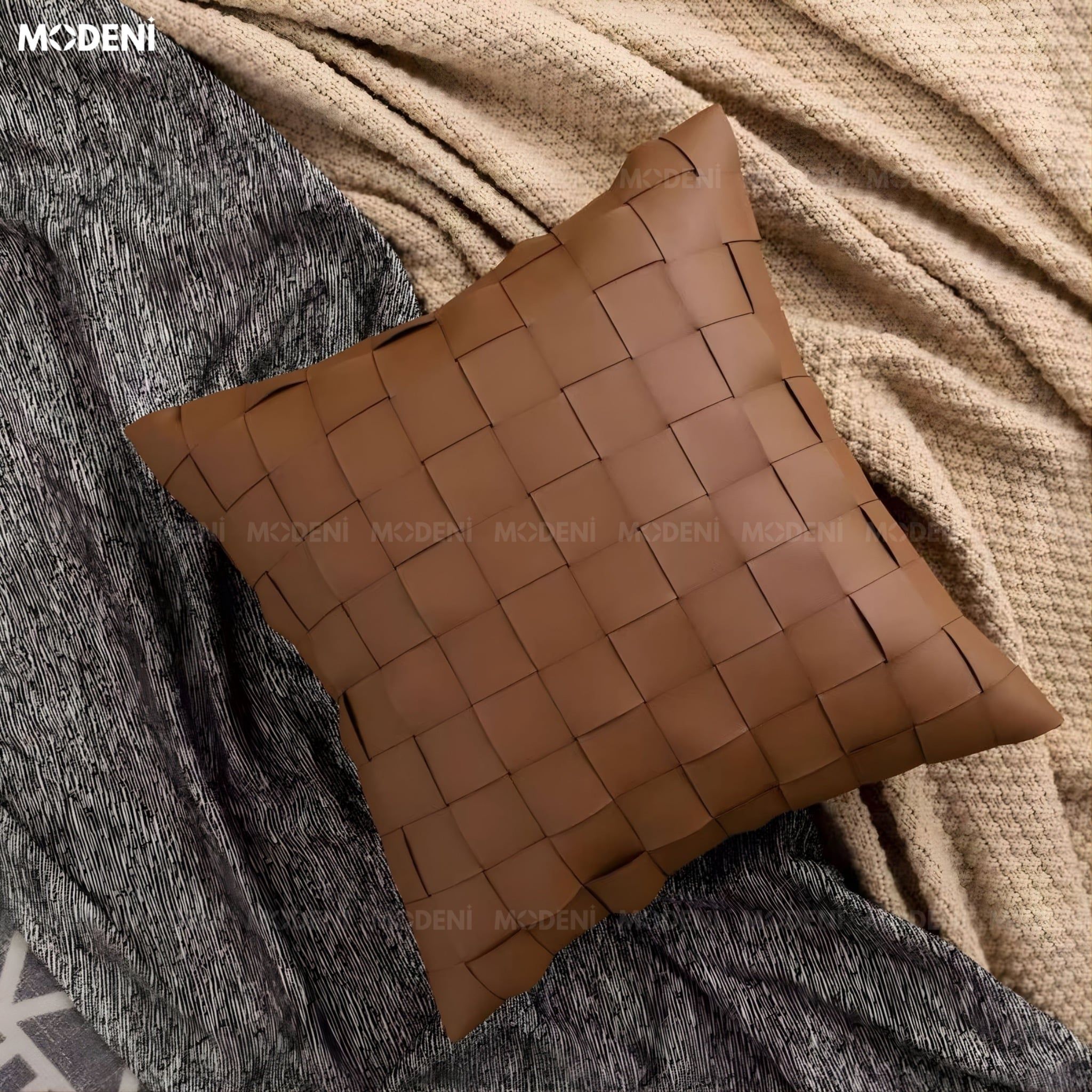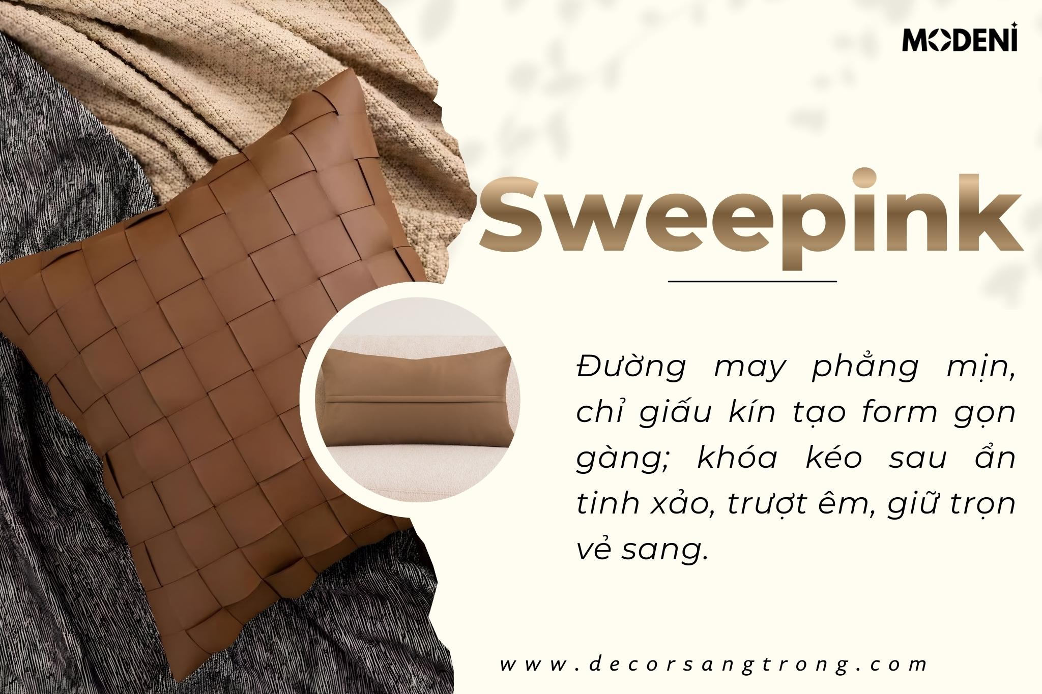 Vỏ Gối Sofa Sweepink – Da Microfiber Thiết Kế Ô Vuông Đan Tay Wabi Sabi