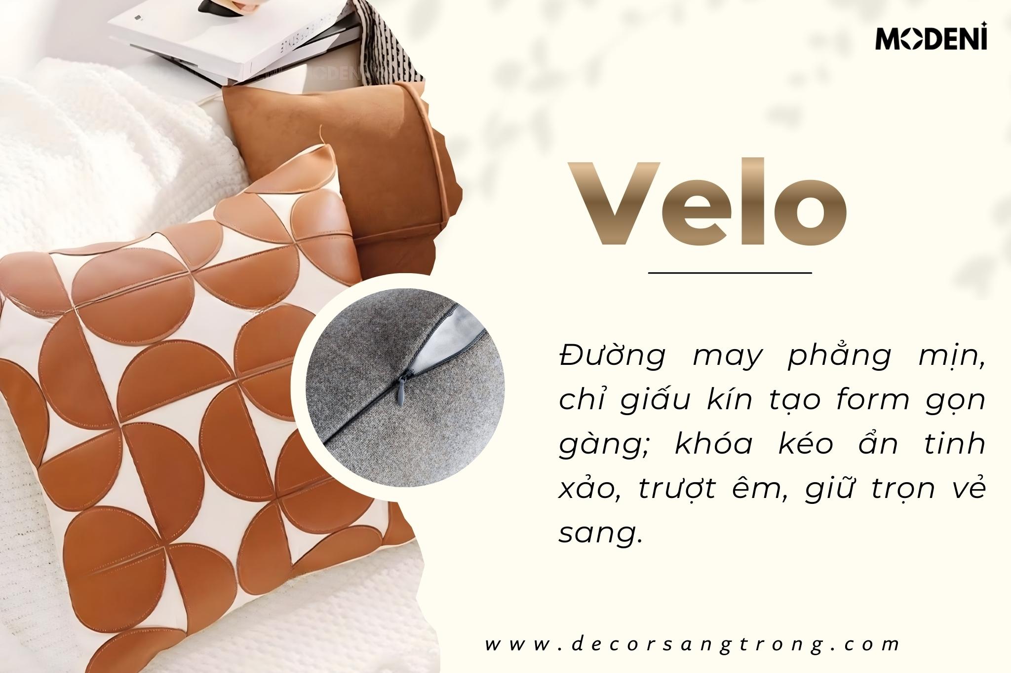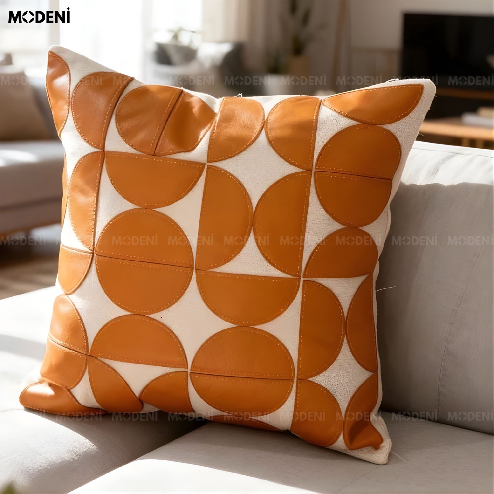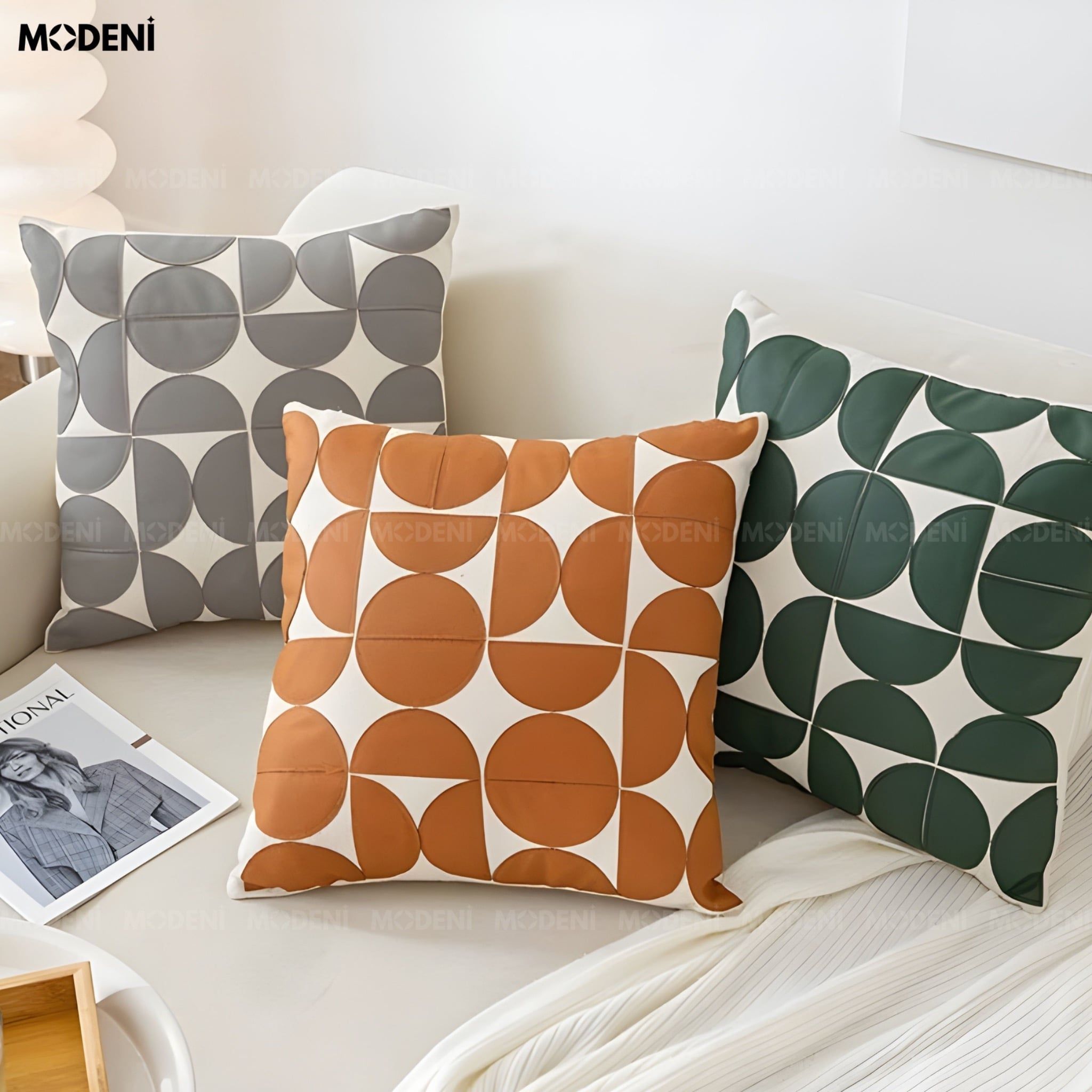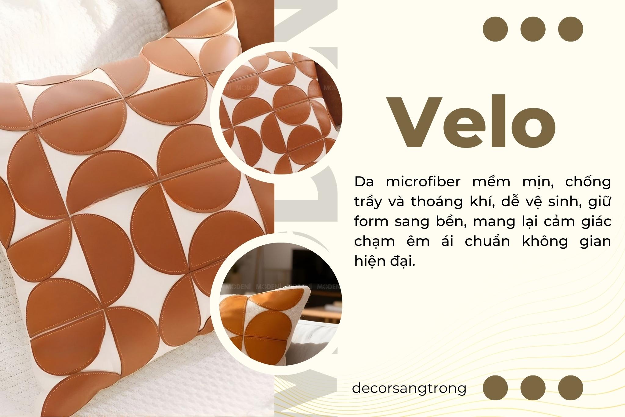 Vỏ Gối Sofa Velo – Da Phối Lanh Họa Tiết Khối Đối Xứng May Bán Nguyệt Phong Cách Funky