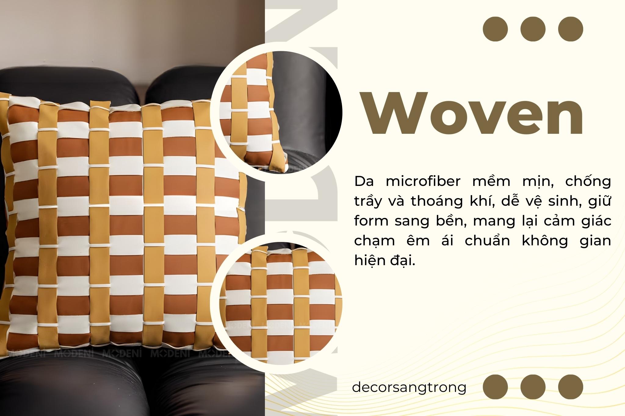Vỏ Gối Sofa Woven – Da Microfiber Kết Hợp Vải Nhung Họa Tiết Caro Đa Lớp Đan Tay Hiện Đại
